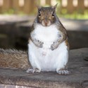 I have never seen such a happy and rotund squirrel and it is still able to run up and down trees with agility!
